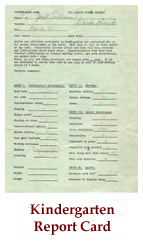 IT DIDN'T START OUT THAT WAY of course. When I was born, I certainly didn't hate school yet. In fact, although I don't remember it much, the record seems to show that my time in kindergarten and first grade, and even later on in primary school (we called it "elementary school"), must have been okay. I have vague memories of things we did, and of some of my teachers. They aren't glowing memories, but I think kids at that age pretty much take things as they come without too many questions.